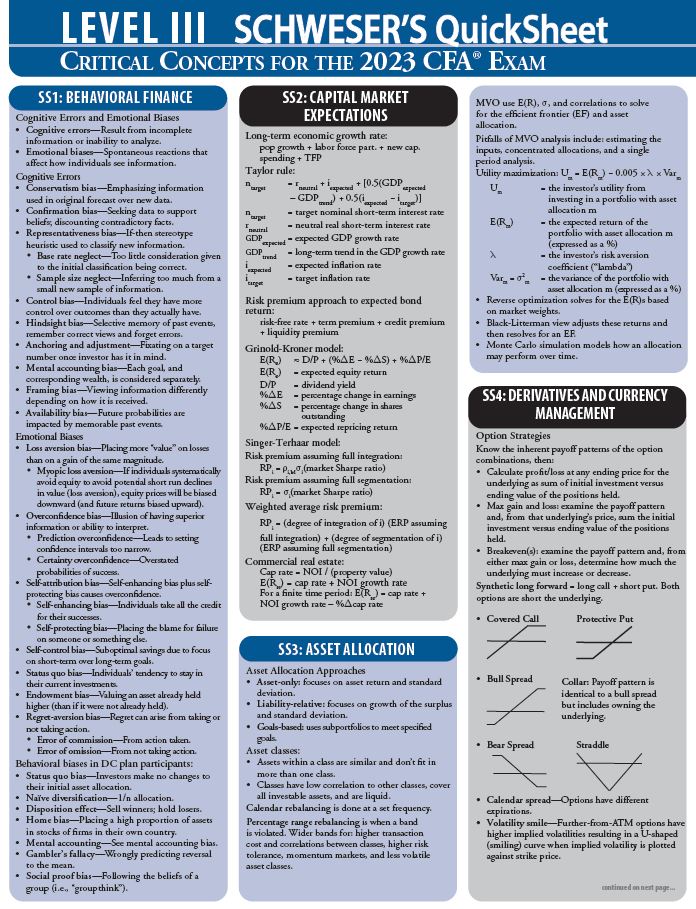 - 2023 CFA Level 3 Schweser's Quicksheet