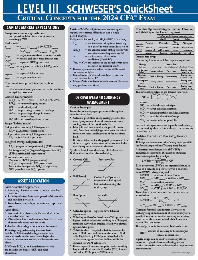 2024 CFA Level 3 Schweser Quicksheet