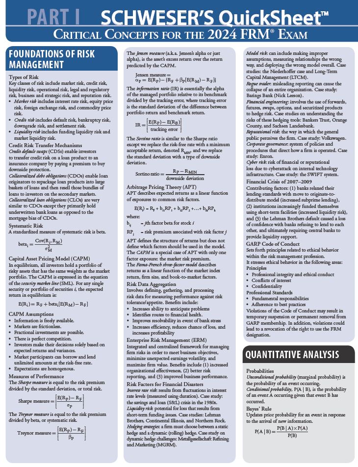 2024 FRM Part 1 Schweser Quicksheet