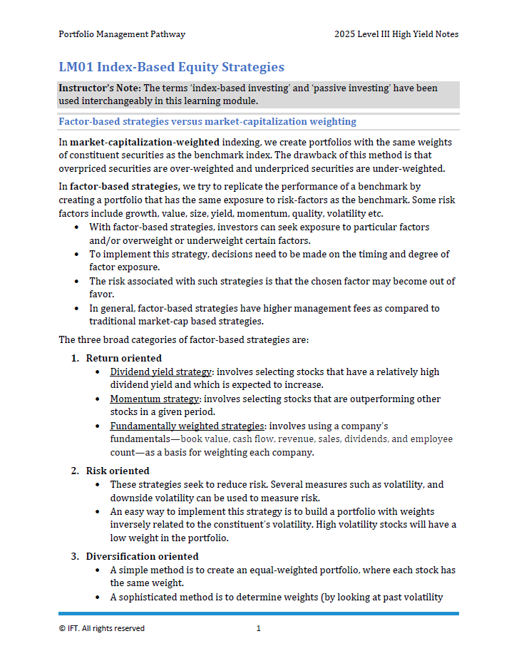 ✔ Portfolio Management Pathway Content – Targeted notes for the specialised readings exclusive to the Portfolio Management Pathway
