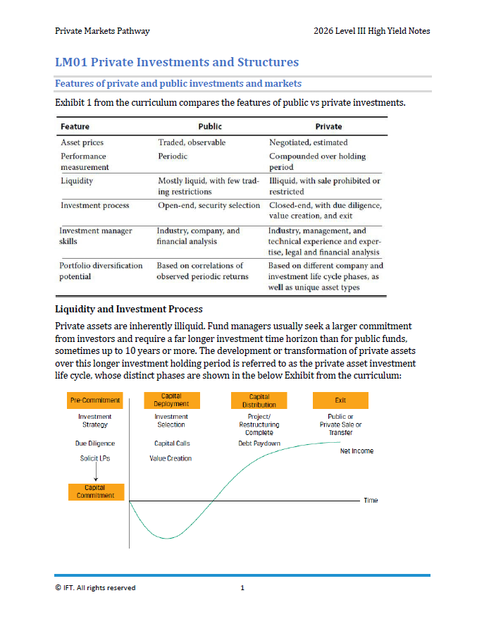 For sale is CFA 2026 IFT High-Yield Notes Level 3 Private Markets Pathway