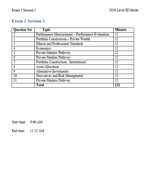 - These mocks are designed for CFA Level 3 Private Markets Pathway